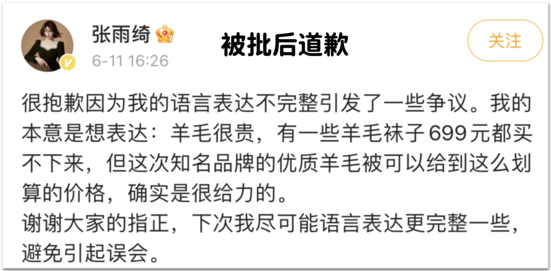 再比如,她搞直播时,卖699一双的羊毛袜,被批评了:
