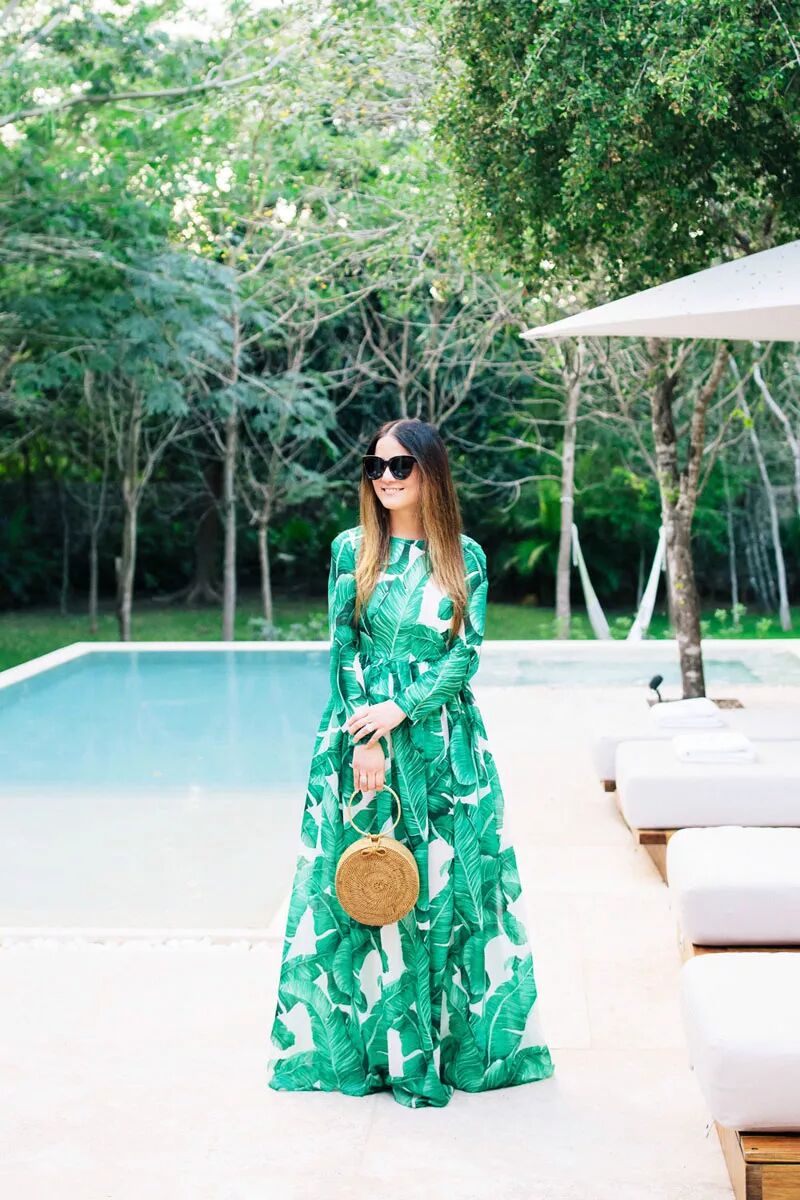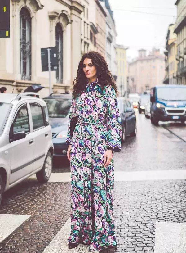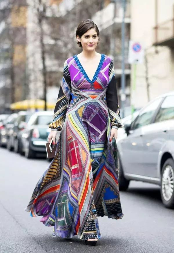 一般来说不太好驾驭的印花长裙有下面这些特点,大家记得避开: