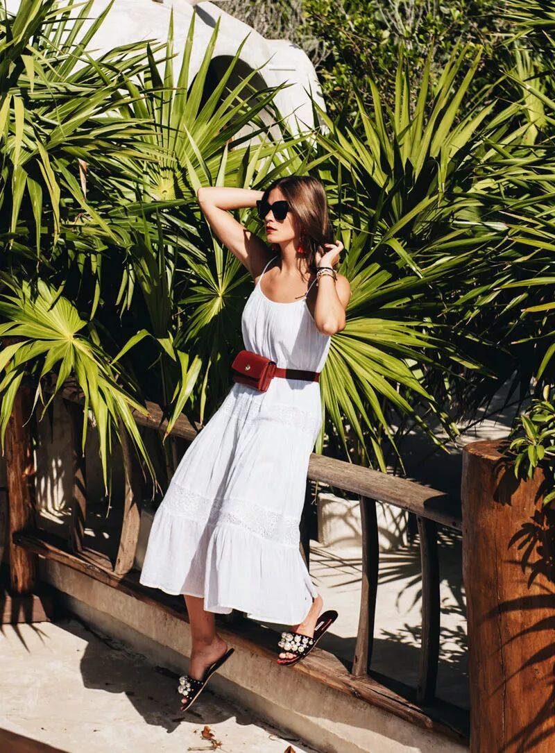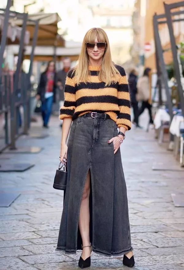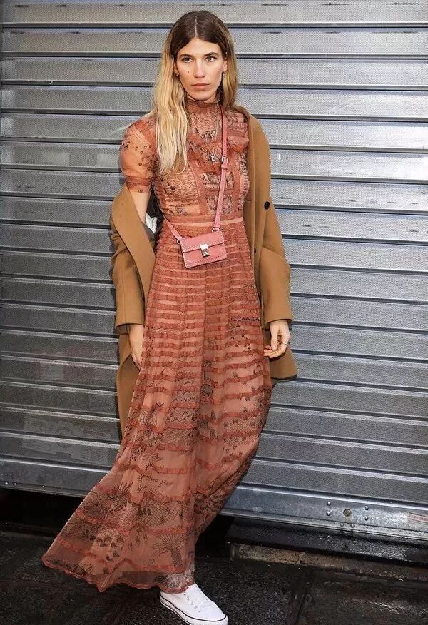有的长裙自带腰线,有的则需要你加一条腰带。