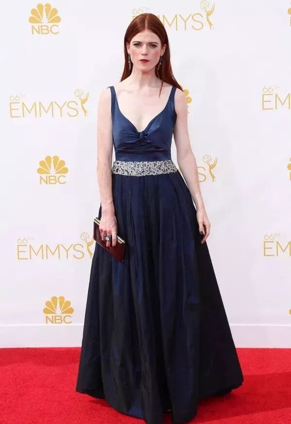 穿了超长礼服+手拿包的Rose Leslie看起来更高。