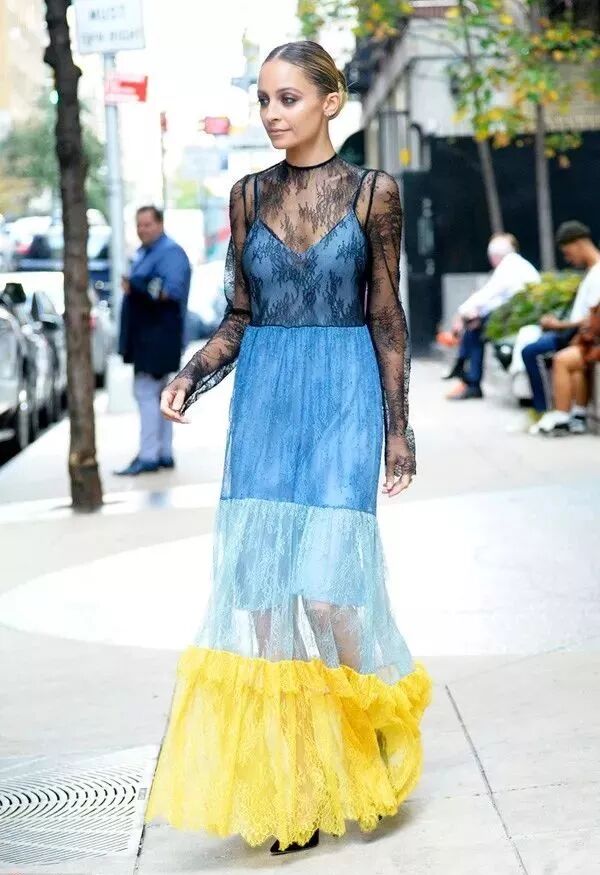 开篇提到的Nicole Warne就是这种穿法的大号粉丝,她偏爱各种有着开衩设计的长裙。