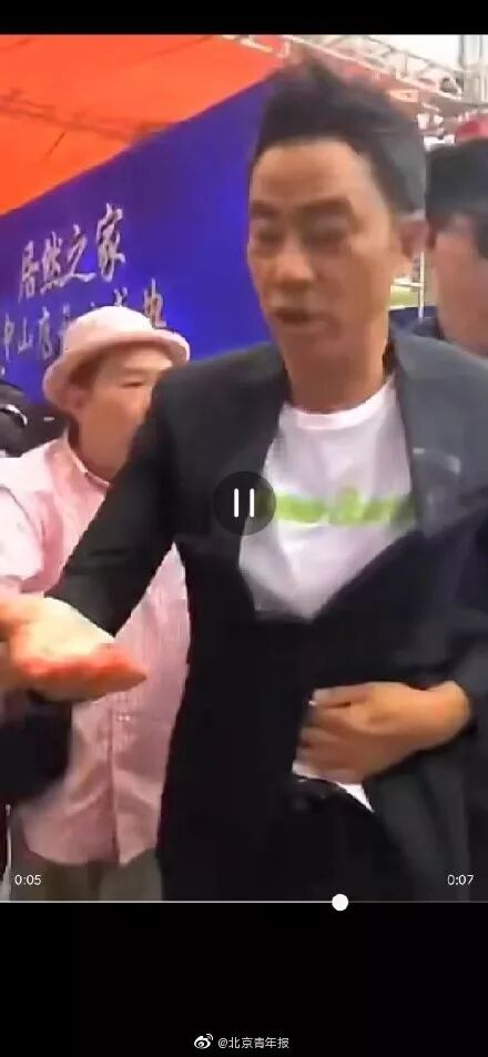 这则视频20日上午在微博上被传播,视频显示任达华在中山居然之家参加商业活动时,一名身穿灰色跨栏背心的男子径直走上台,右手插兜掏东西,并未受到保安阻拦。走上台后,该男子疑似用利器直接捅向任达华腹部,随后现场保安冲上台将该男子控制住。