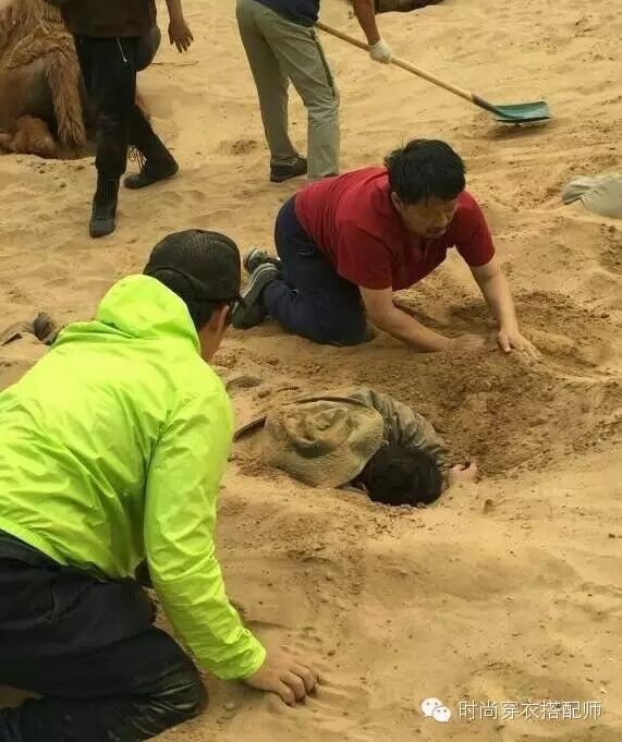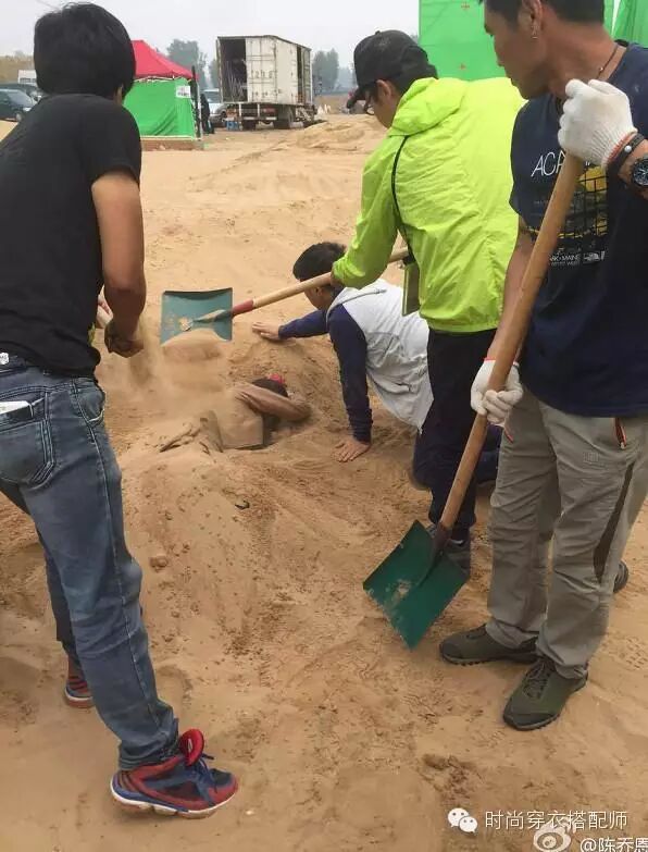 5.4下午陈乔恩在微博上发了被导演“活埋”照片,可见大美女在拍摄现场是如此的辛苦。
