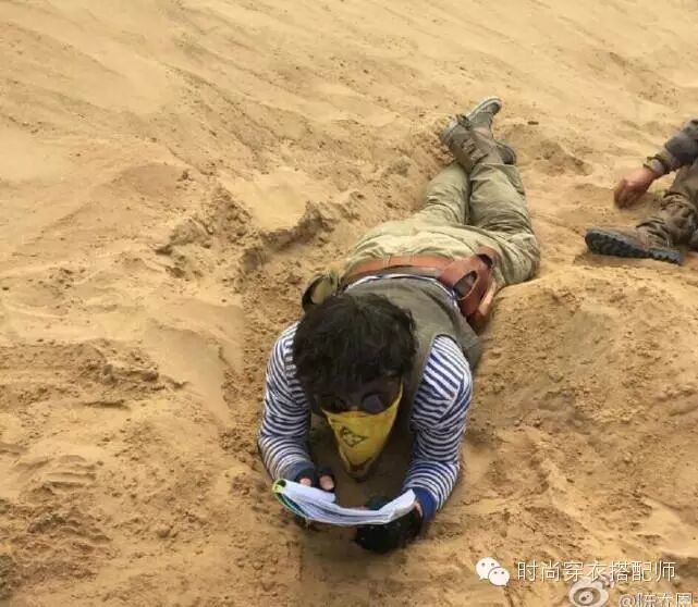 边看剧本,边吃黄沙