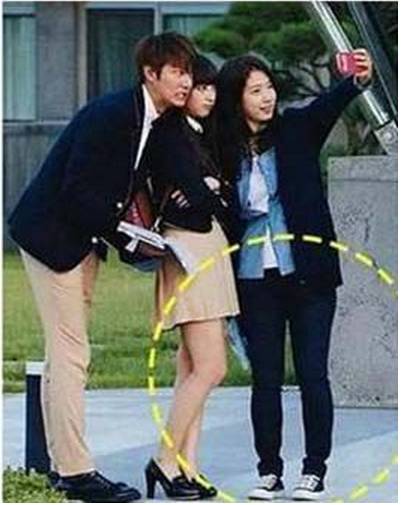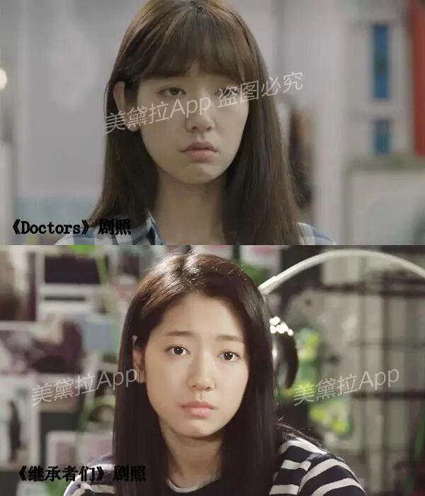 同样是学生妹造型,在拍摄《继承者们》的时候,朴信惠虽然被吐槽过腿比李敏镐粗,但那张充满胶原蛋白的脸透出浓浓的少女气息啊~