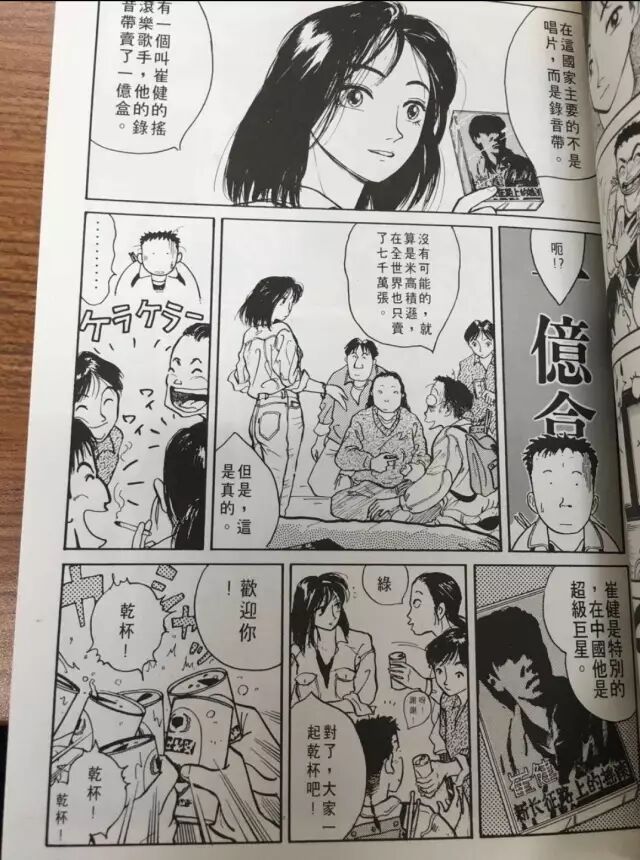 在一本日本漫画书中(此为港版),某乐队主唱称崔健的《新长征路上的摇滚》专辑在全中国卖出了一亿盒。
