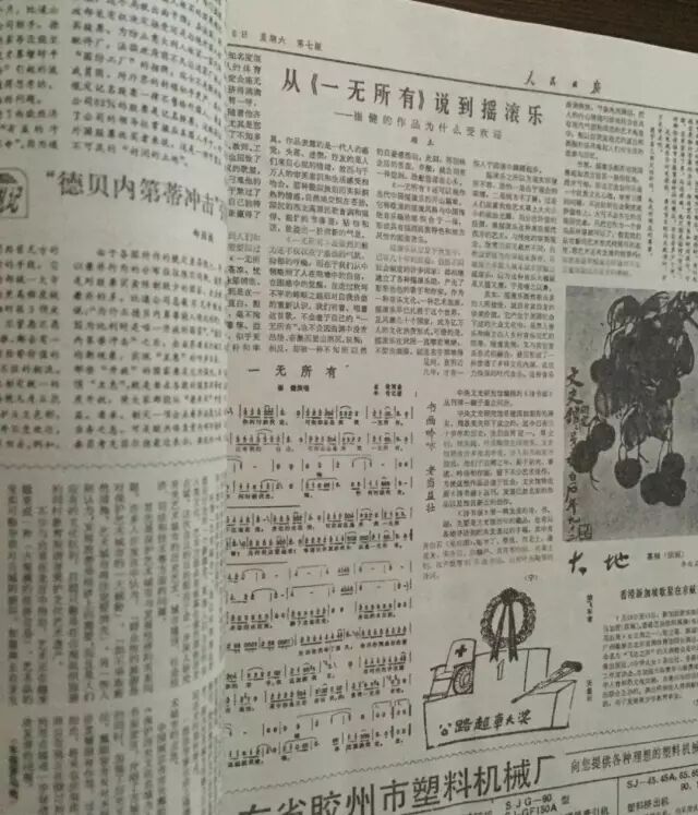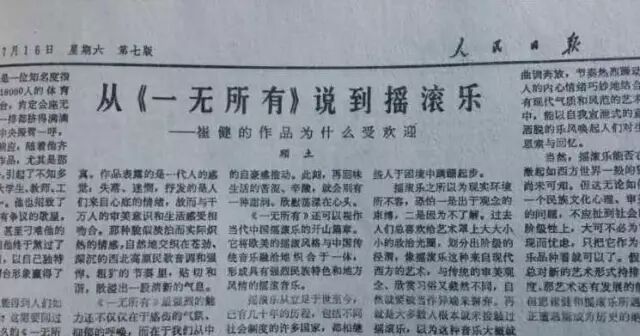 1988年7月16日,崔健登上了《人民日报》