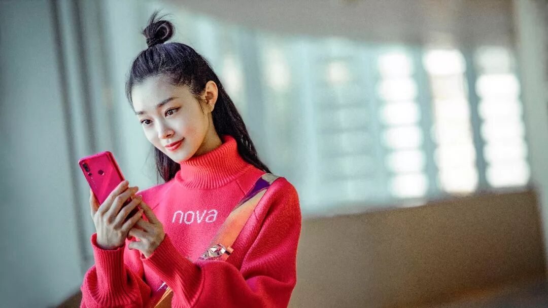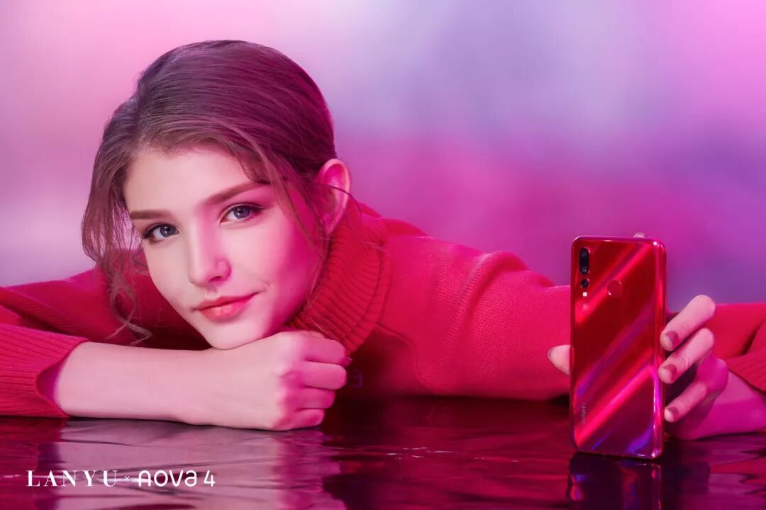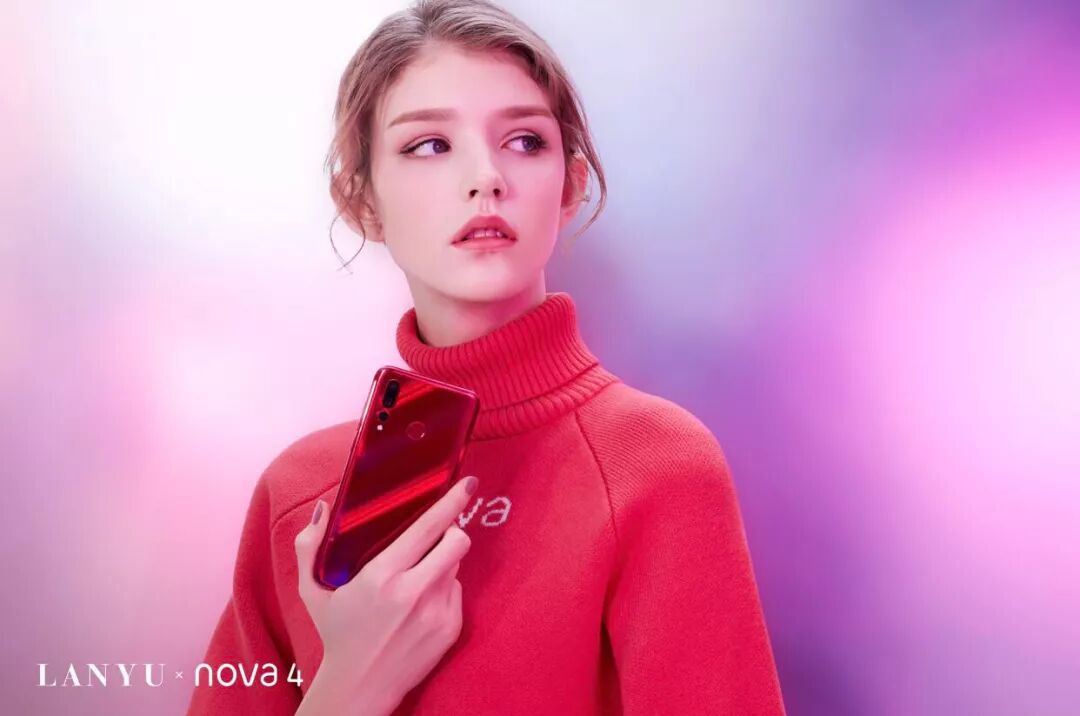 高定礼服设计师兰玉从华为nova4蜜语红手机汲取色彩与版型的创意,为宋轶打造了这款美衣。