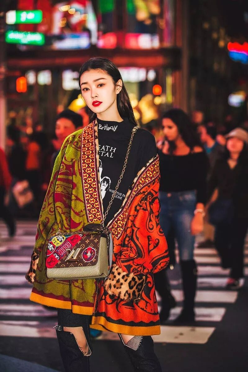 也可以站在纽约夜市的街头,用潮包和烈焰红唇,让自己化身为叛逆少女。