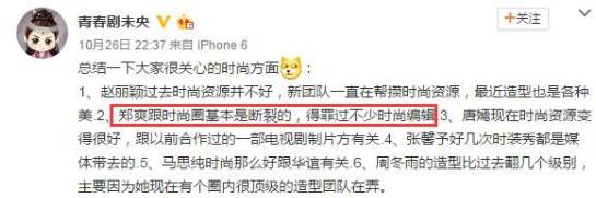 之前有微博博主爆料说,郑爽时尚资源几乎是断裂的,因为她得罪过一票时尚编辑。