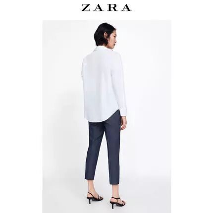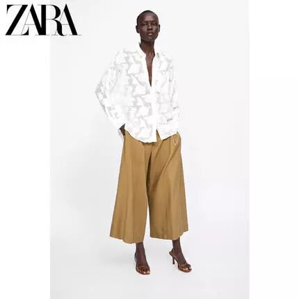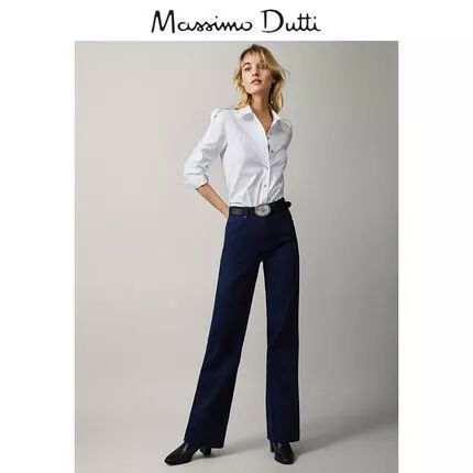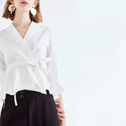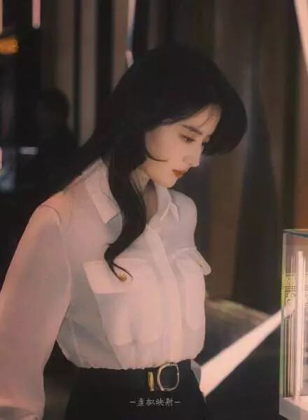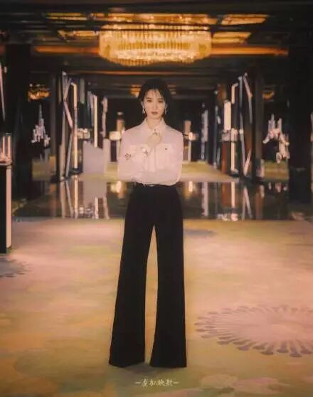 白衬衫搭配黑色阔腿裤,配色简单,但整体线条干净而流畅
