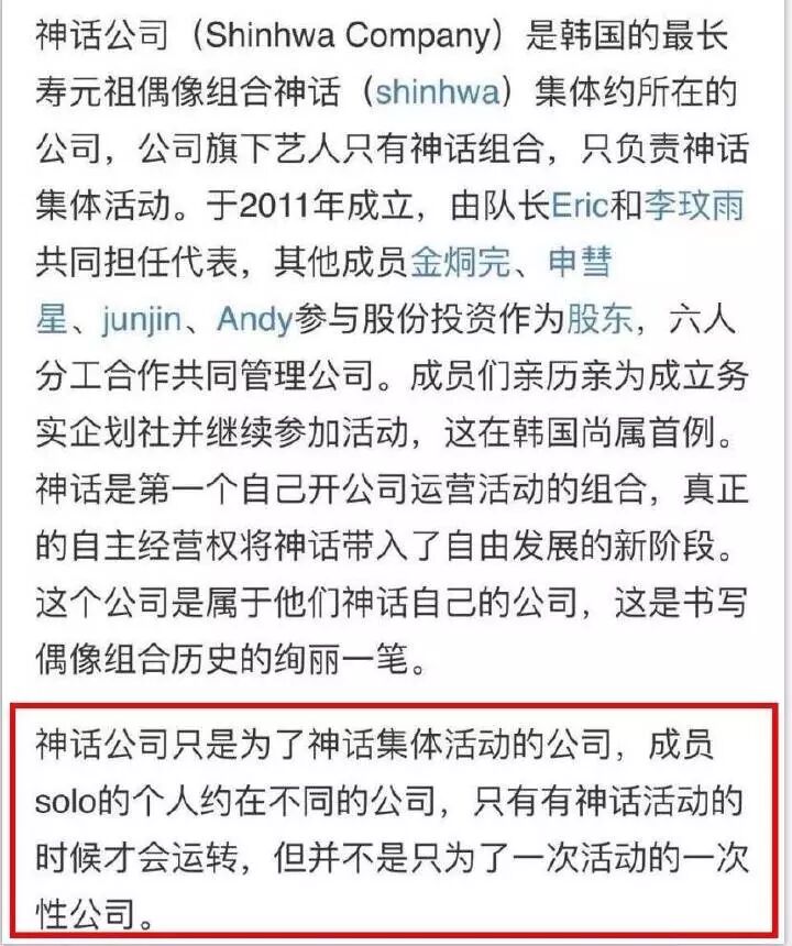 这里就是神话能够坚持20年的秘诀,组合有自己的公司神话公司,只负责组合的集体活动,而他们的个人solo有各自的公司。