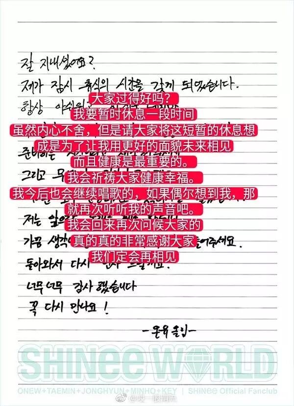 今天是温流入伍的日子,他特地写了亲笔信给大家,说他一定会更健康的回来的,希望大家不要太想自己,未来一定会继续唱歌的。