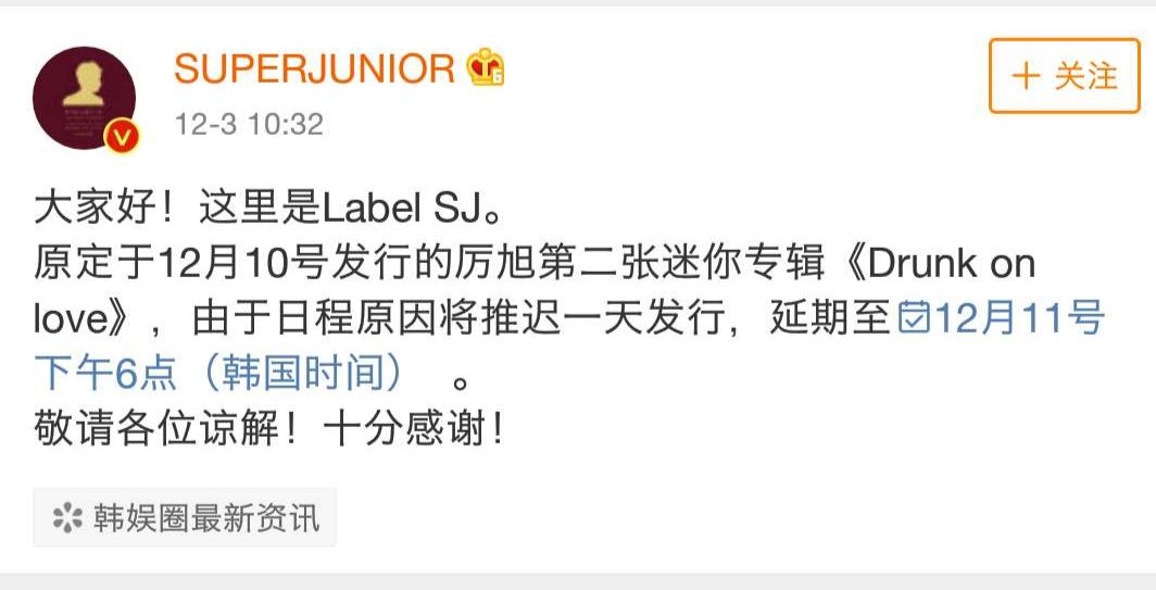 这个流感有点凶,听说还挺危险的,所以厉旭需要隔离冶疗,而原定于11日公开的新专辑将延期至明年1月发行。