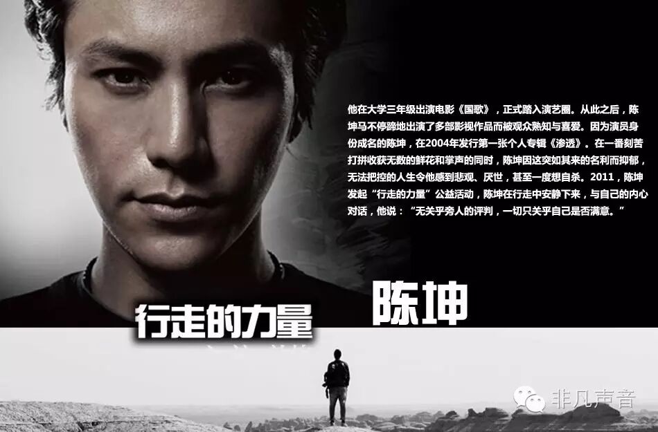 在他事業步入高峰期的時候,名利雙收的他意識到認清自我的意義重大。因此他選擇用自己曾受益的行走方式作為內核,組建心靈公益項目“行走的力量”,開始了尋回自己的旅程,希望能讓更多的人體會到行走帶來的靜心力量。然而每年能夠作為誌願者親身參與到行走活動中的人畢竟有限,因此“行走的力量”每年舉辦多次文化藝術及慈善活動,立誌將止語行走的靜心方式以更多元的形式傳遞給需要幫助的人,使更多人在此號召下,進行自己的心靈行走。在當下快節奏的城市生活中,人們的確需要“行走精神”,在迷亂中認清自己,才能更好的勇往直前。