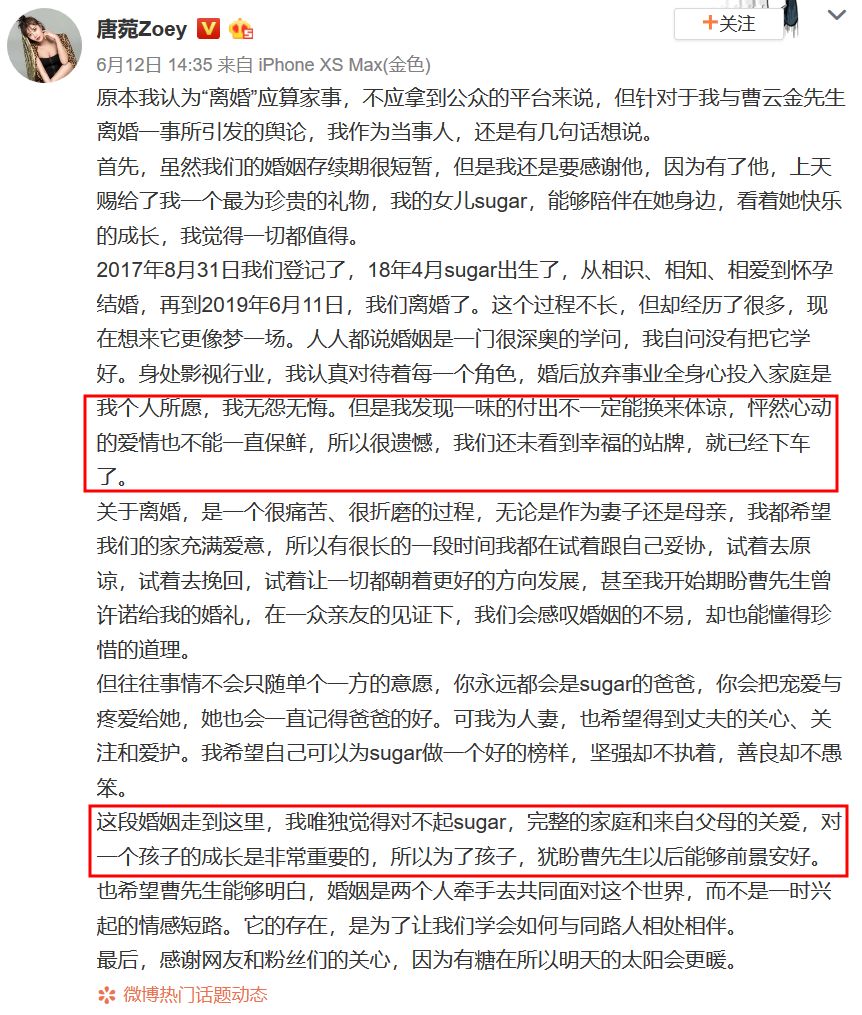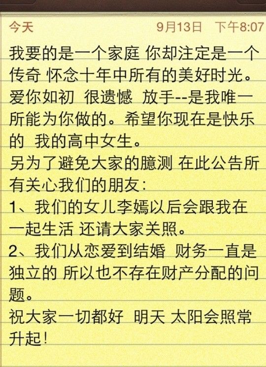 后又厚颜无耻地在微博声明是和平协议离婚。