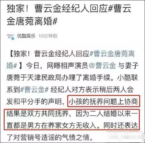 其经纪人回应时,还暗指俩人离婚是因为婚后都是男方在赚钱养家,女方没有收入而被嫌弃。