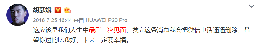 不过胡彦斌极力否认,解释说这次见面是二人最后一次见面,没有复合的可能。