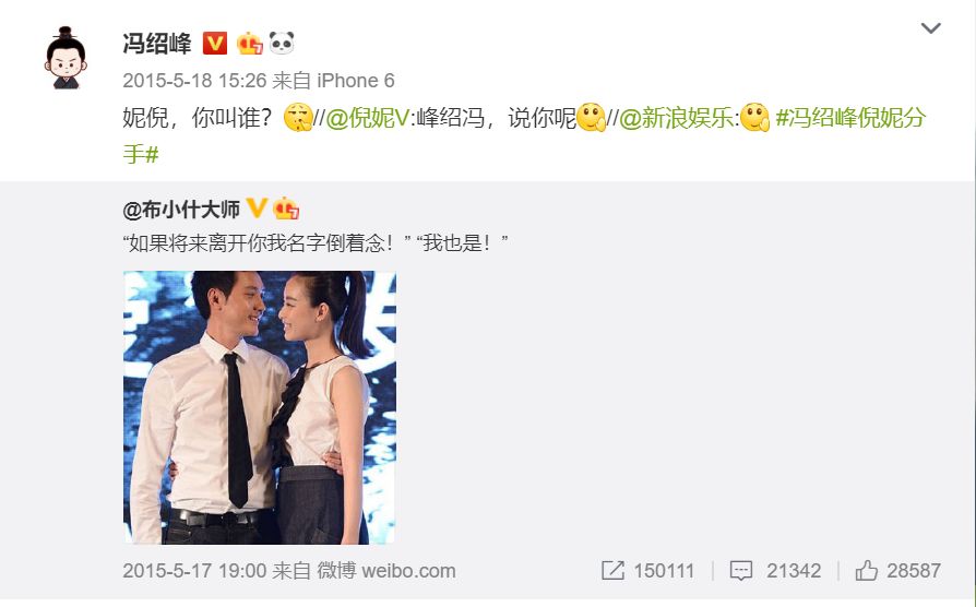 要说明星分手文案还搞得像公布恋情轻松欢快的,估计只有冯绍峰和倪妮了吧。
