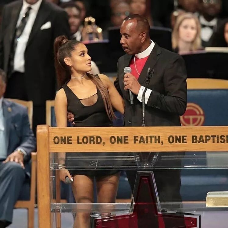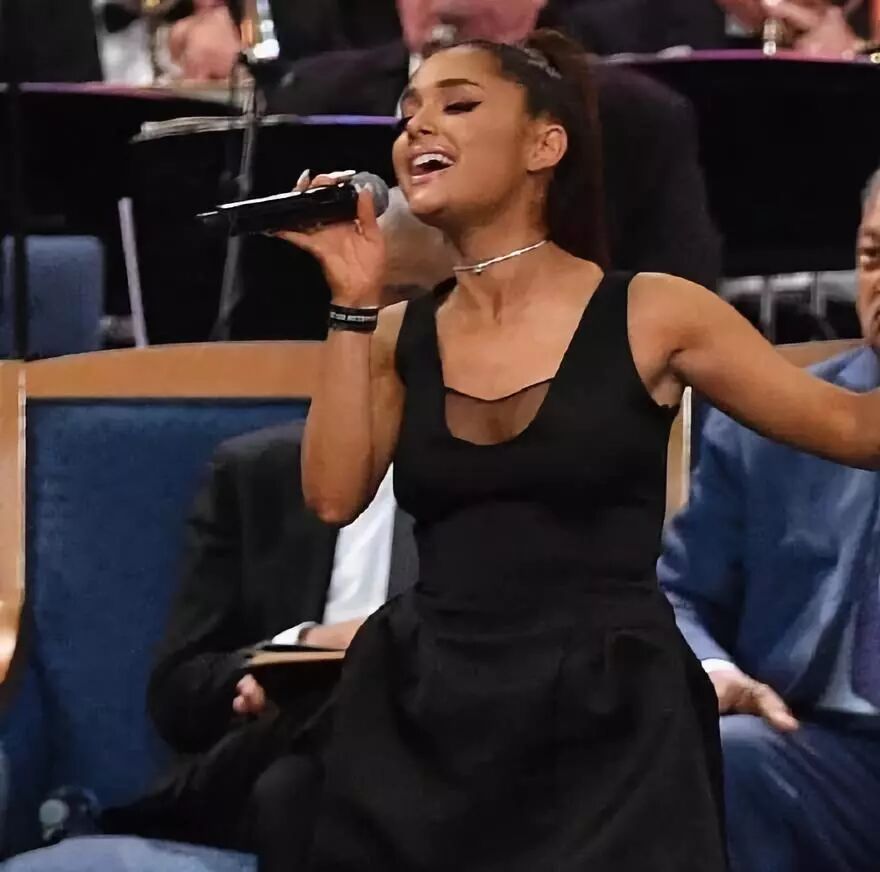 在灵魂歌后Aretha Franklin艾瑞莎·富兰克林奶奶葬礼上,A妹Ariana Grande受邀请登台献唱(You Make Me Feel Like) A Natural Woman一曲,缅怀逝去的艾瑞莎奶奶。