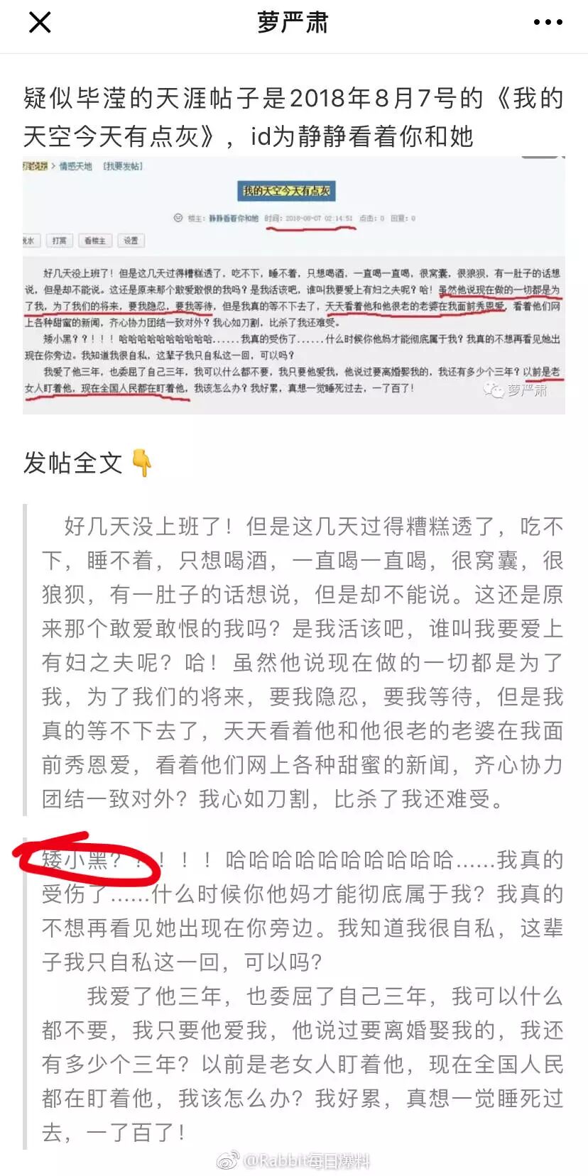 首先,有人扒出了疑似毕滢在天涯上的小号。