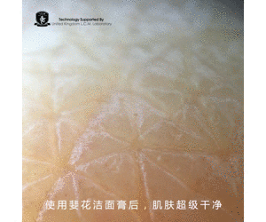 使用200万像素的高清皮肤测试仪检测:放大200倍倍率下,用斐济水洁面清洗后,