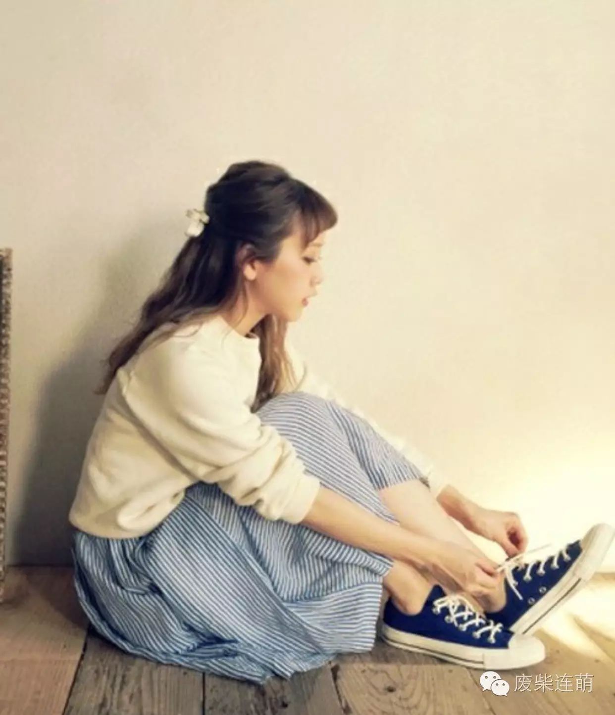 条纹裙这身儿感觉就是典型日系森~并且从田中里耐的造型中,我们可以看到帆布鞋对于凹造型的实用程度,所以啊,像纯白色,纯黑色或者深牛仔蓝色,灰色这样的帆布鞋一定要人手一双哦~绝对减龄利器!