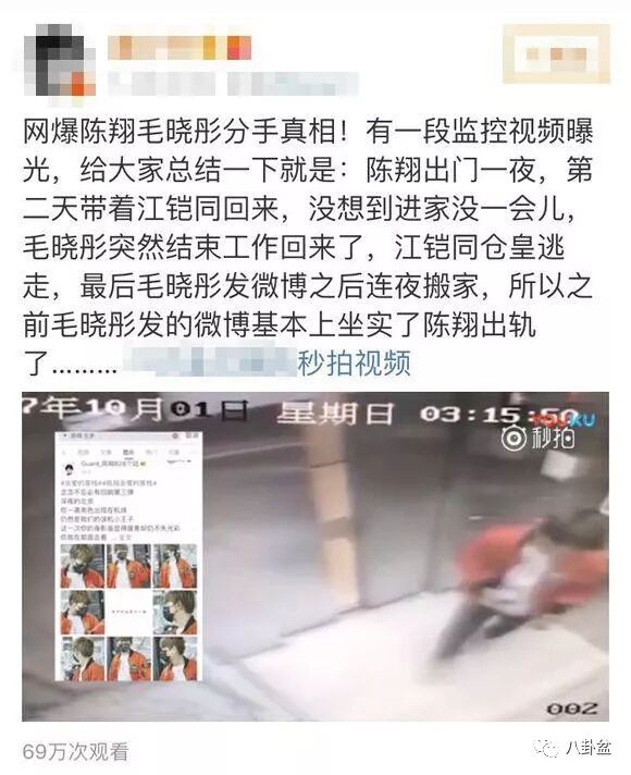 而就在和女友“和平”分手之后,提到陈翔都会扯到那一段感情。近期更是被网友爆料出一段监控视频,劈腿传言也坐实。