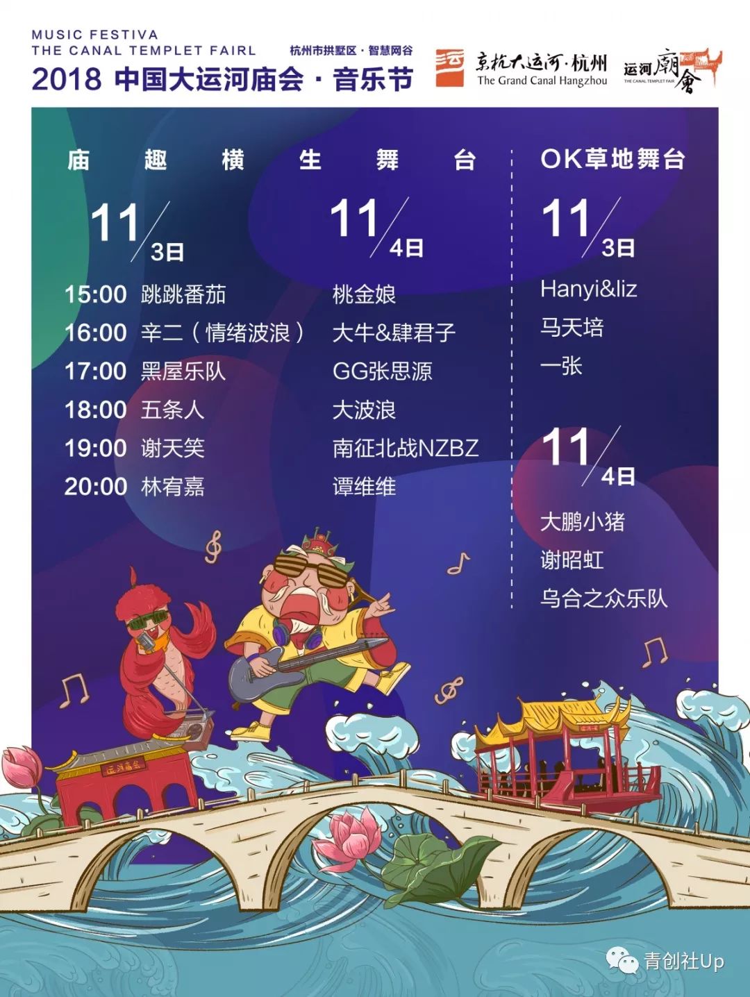 音乐节当天更有五条人、张思源、大波浪、黑屋乐队、辛二(情绪波浪) 、跳跳番茄、大牛&肆君子、桃金娘等众多音乐节嘉宾带给你多元音乐体验,感受大运河庙会音乐节的魅力!