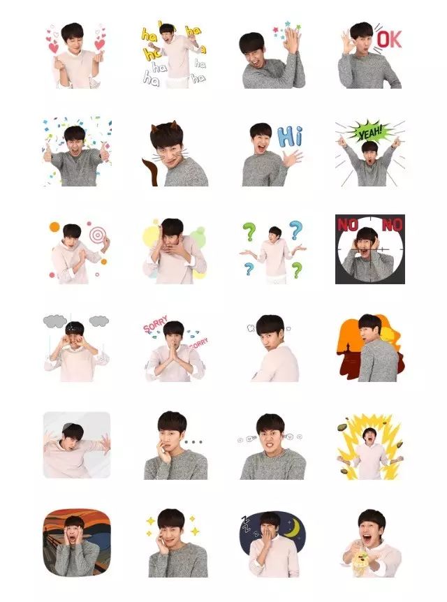 另外,这组微信贴图总共由24张不同的贴图所组成,每一张李光洙都用搞笑的表情和夸张的肢体动作来诠释,是一组充满李光洙个人风格的贴图。
