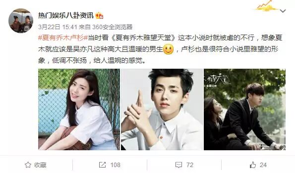 由韩国导演赵真奎执导,韩庚、吴亦凡、卢杉、周元、包贝尔、张瑶主演的青春暖伤纯爱电影《夏有乔木雅望天堂》今日首发定档预告。该片由同名优质IP孵化而成,自启动以来便受万众期待,也有业内人士表示“这应该是2016年青春电影的全新篇章”。值得一提的是,韩庚此次不仅是主演,更以出品人的身份把控全局,令人期待。首片中两大主演韩庚吴亦凡陷虐恋,两人为卢杉所演的角色黯然神伤,陷入三角恋关系,而卢杉曾出演《琅琊榜》中的“靖王妃”。