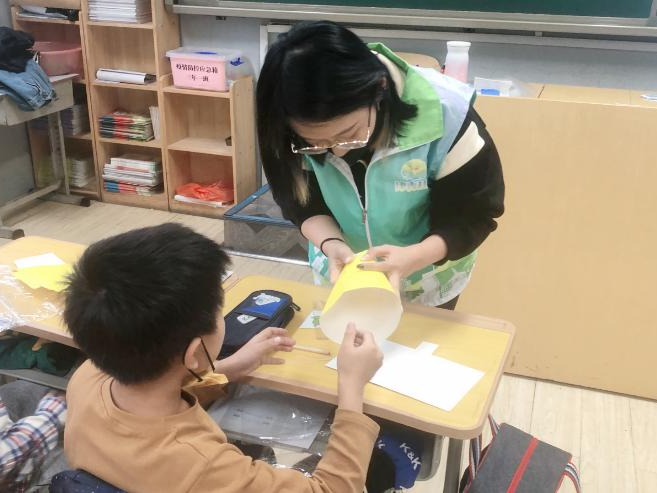 特别是在“共建生态文明,守护绿色家园”环保主题服务项目中,为了使青少年形成良好的环保观念和行为规范,她积极探索教学模式,采取互动交流的形式,确保将简单的环保知识、常识普及到每一个孩子,让他们入脑入心,提高青少年低碳环保和垃圾分类意识,助力环保宣传工作走深走实。