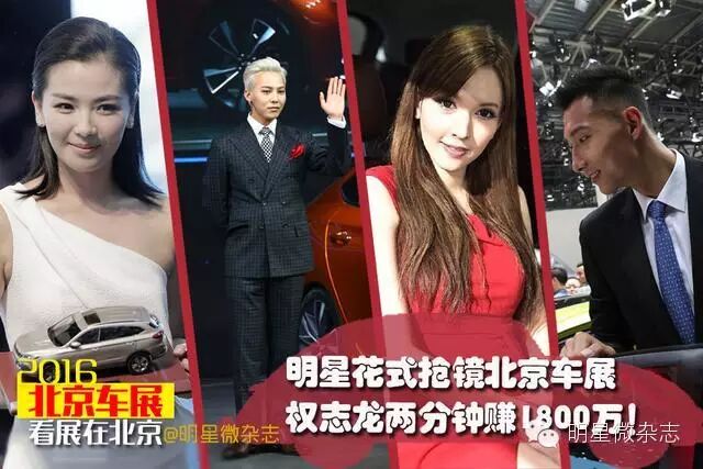 今年北京国际车展最大的亮点居然不是车,完全被wuli志龙欧巴成功抢镜。GD只出现了3分多钟便迅速离开,全程面带微笑未开口讲话,这样短暂的现身欧巴就已经入账1800万,这么算下来出场费足足达到每秒9.1万元~小编只想说,欧巴可以让我多看你一眼吗?