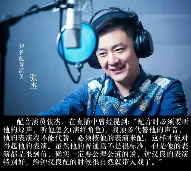 再回过头来看,细数中国影视剧行业发展这几十年,采用了配音的影视剧不计其数,而且很多作品都是经典,很多采用了配音的角色也成就了经典。国内的影视剧受限于制作成本、工期以及拍摄场地等多种原因,大多数拍摄现场难以同步收音,所以后期采用配音并不是演员自己决定的。而一个角色的完成度好不好,和配音更加没有太大的关系。作为目前国内炙手可热的配音演员张杰是这么说的:“配音时必须要听他的原声,听他怎么演绎角色,我顶多代替他的声音,他的表演我不能代替,必须按照他的演技来配,这样才能对得起他的表演。。。钟汉良的表演特别好,给钟汉良配音配的时候很自然就带入戏了”。 这段话从另一个角度也证明了,张杰为多部电视剧配音,为什么并不是每一部的角色都能被观众记住,一个角色的成功靠的还是演员的演技。恰好钟汉良做到了,所以才能有那么多经典的角色,至今被观众记忆。