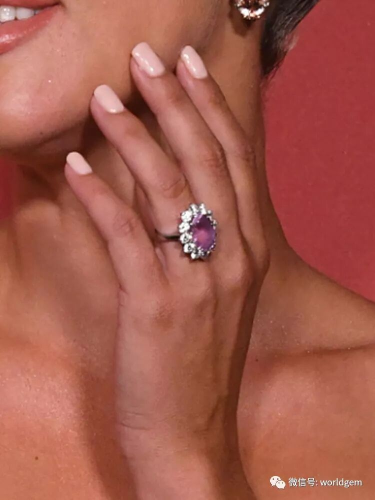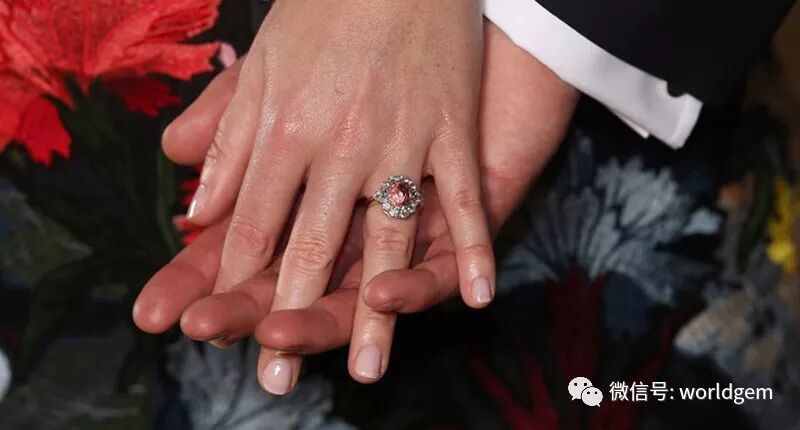 而像曾属于Diana王妃、现在流传给Kate Middleton的蓝宝石订婚戒指,以及去年订婚的英国Eugenie公主的帕帕拉恰蓝宝石戒指一样,Perry的戒指也是用彩色宝石为主石,之后绕钻石镶嵌的。Perry戒指的主石像是一颗热粉色的蓝宝石也可能是一颗红宝石。