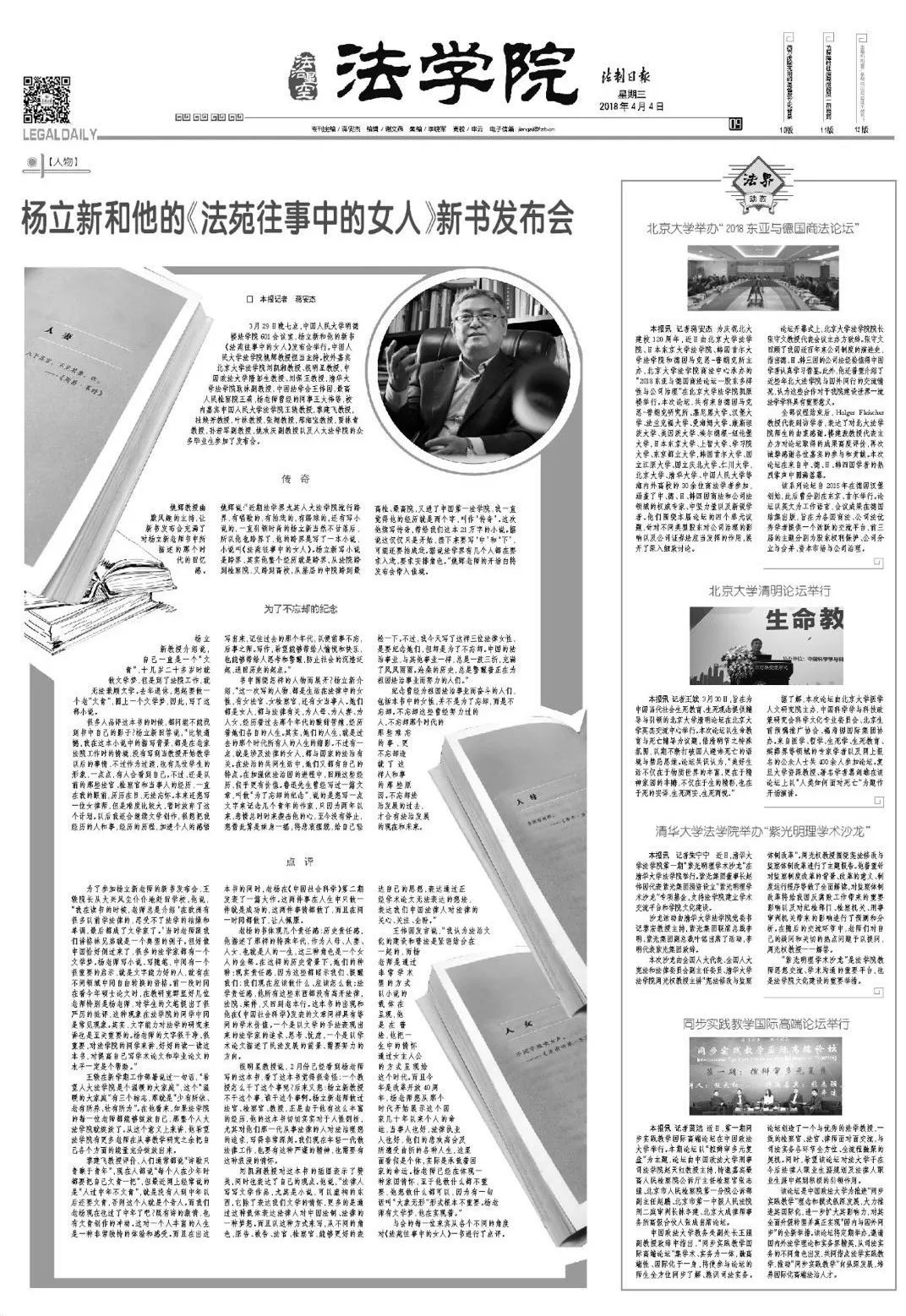 “近期法学界尤其人大法学院流行跨界,有唱歌的,有拍戏的,有踢球的,还有写小说的,一直引领时尚的杨立新当然不甘落后,所以他也跨界了,他的跨界是写了一本小说,小说叫《法苑往事中的女人》。