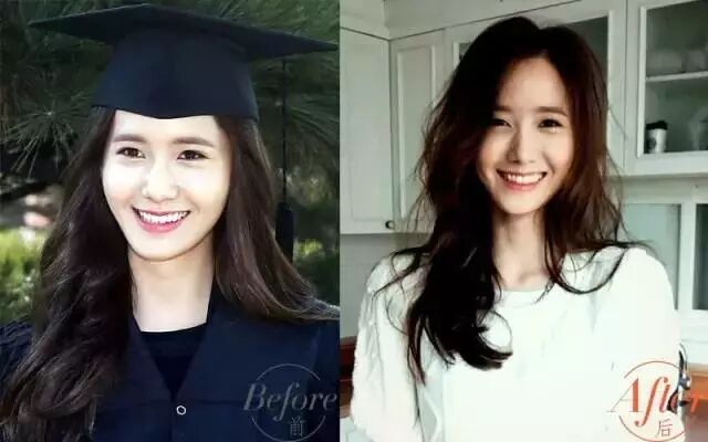 左边的图片能看出来允儿本身的鼻梁其实是有一点点宽的,所以正面的视觉看上去就没有很挺拔,画过修容之后,宽鼻边窄,立刻变成修长小翘鼻,美死了呢 !