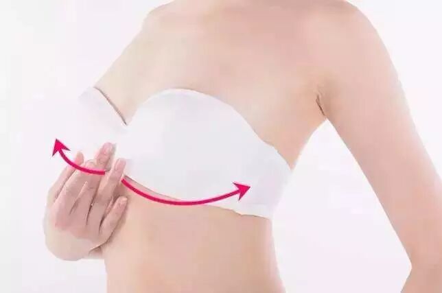 分别向左右,用滚珠由内到外,沿肋骨走向滚动,注意要避开乳头位置。