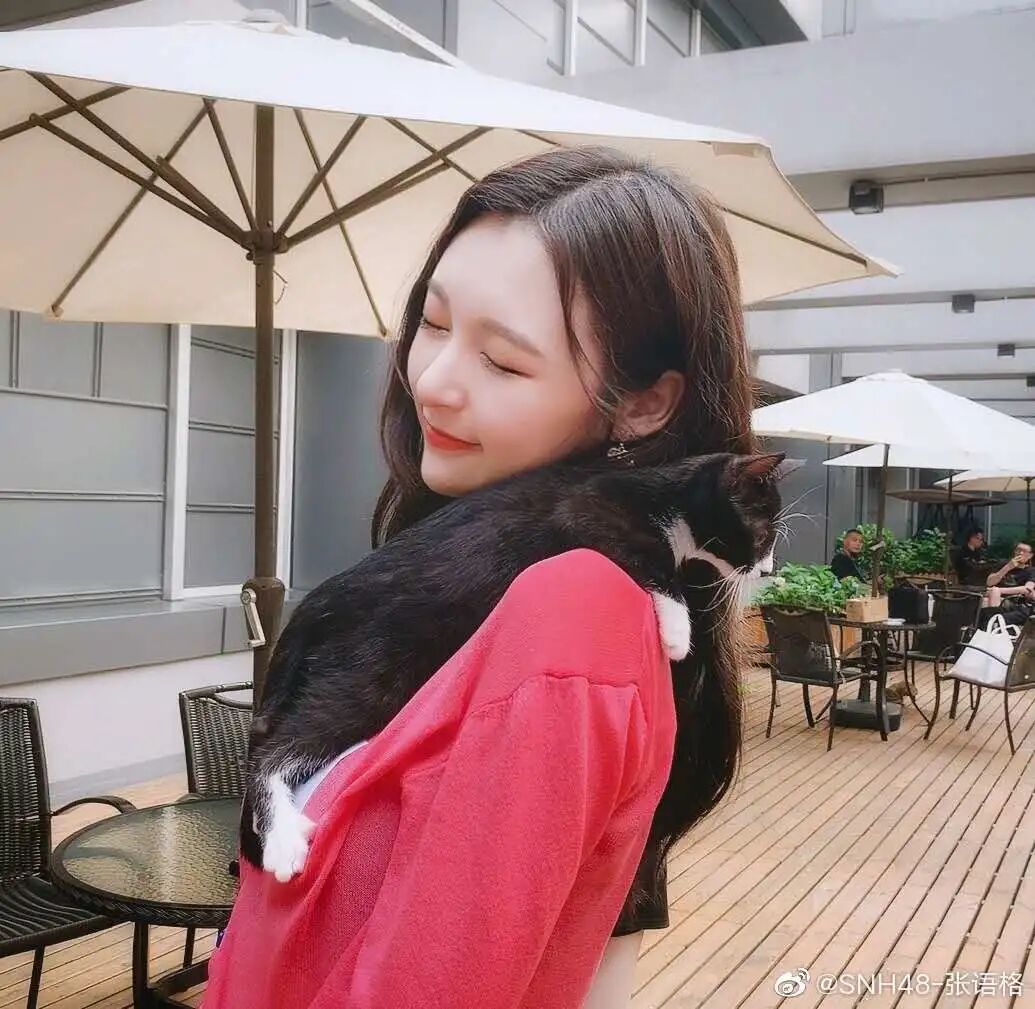 作为一名资深吸猫爱好者,张语格在2018年10月15日发了一组与猫有关的写真,文案是: