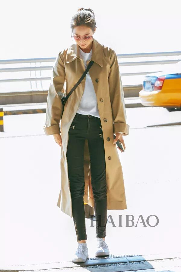 而张钧甯身上这件去掉了肩带与枪挡的风衣则适合喜欢极简风的你~