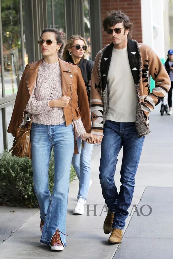 加入毛衣与复古的喇叭牛仔裤之后,AA则成了自由的嬉皮士,所以啊~只要找对“搭档”皮衣再“硬”也能为你所用。