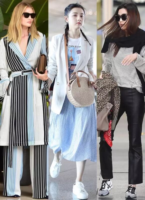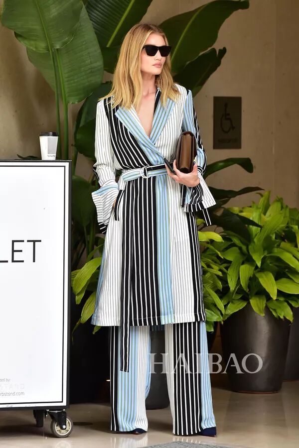 套装现在也越来越流行,这段时间Rosie Huntington-Whiteley、Bella Hadid都在穿,“郭达嫂”的彩色条纹套装是属于女高管的假日风~