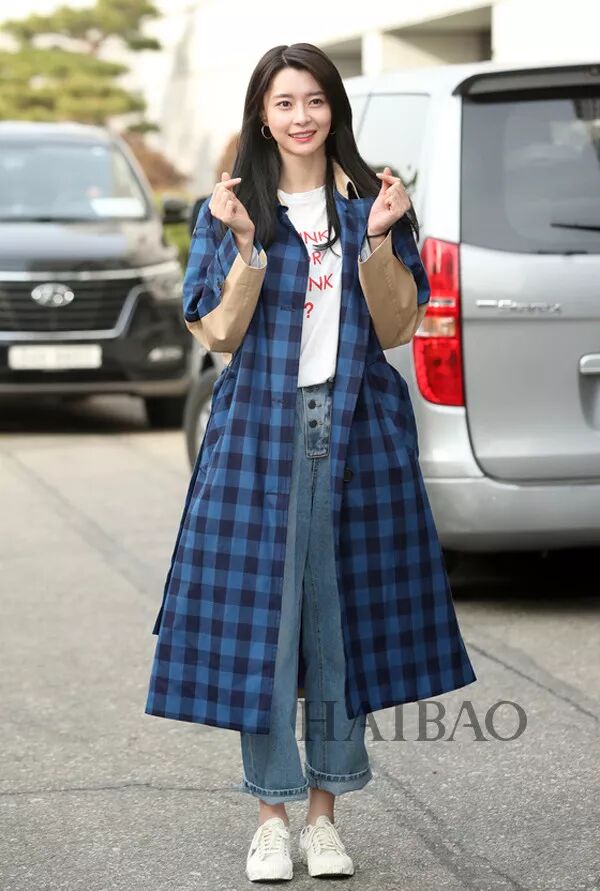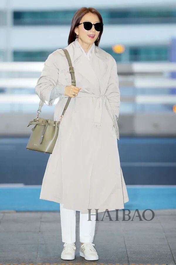而“战壕风衣”材质比较挺括,很难穿出轻盈的感觉,所以敞开穿要比绑紧了显瘦。特别是像河智苑这种“肉呼呼”的体型,更需要留出“空档”来减轻重量感.