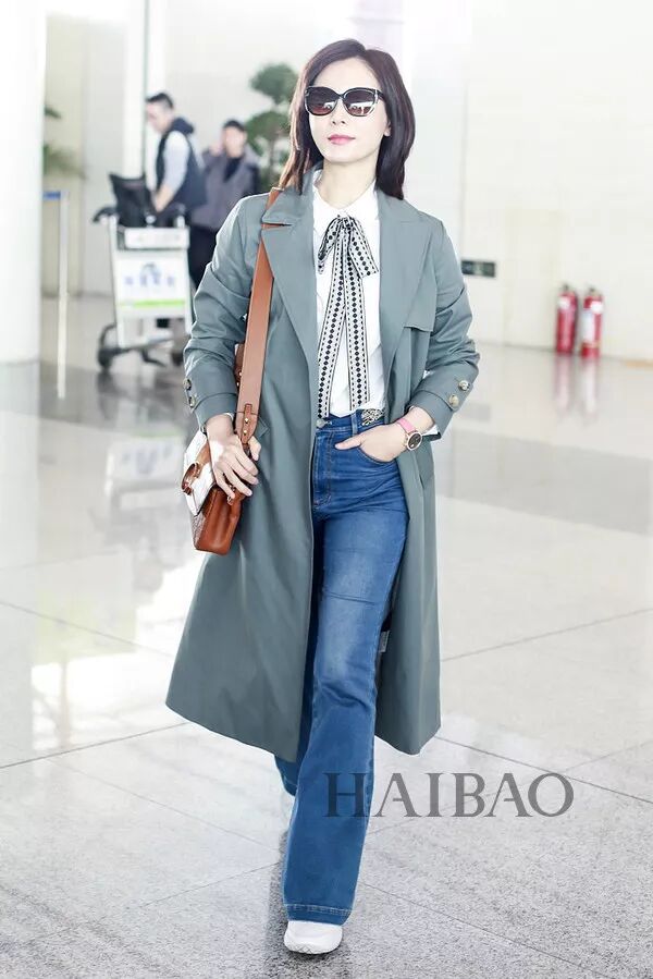 陈数的风衣+喇叭牛仔裤Look复古又好看,但系领结的细节“戏份”有点重,风衣还是搭得随意一些更有腔调~