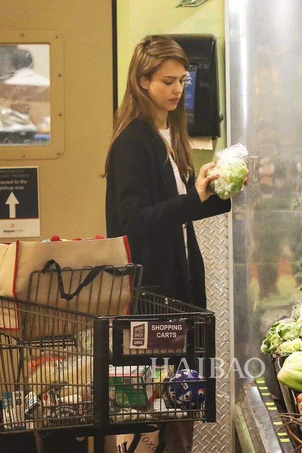 Jessica Alba在“睡衣”外面套件大衣就外出买菜了~