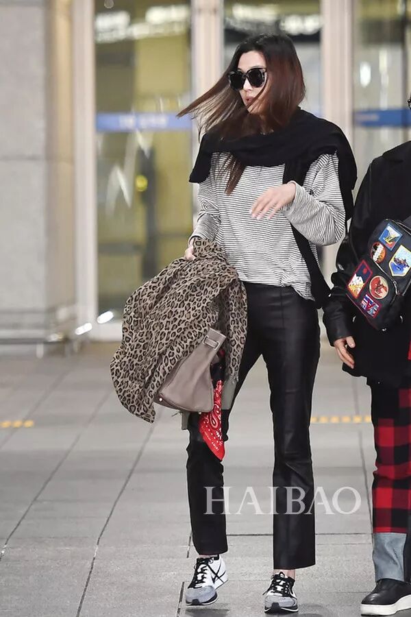 韩国-南京往返全智贤穿的都是豹纹外套+皮裤,她的搭配告诉我们:保住腰线不仅能保住身高,还能提升精气神~