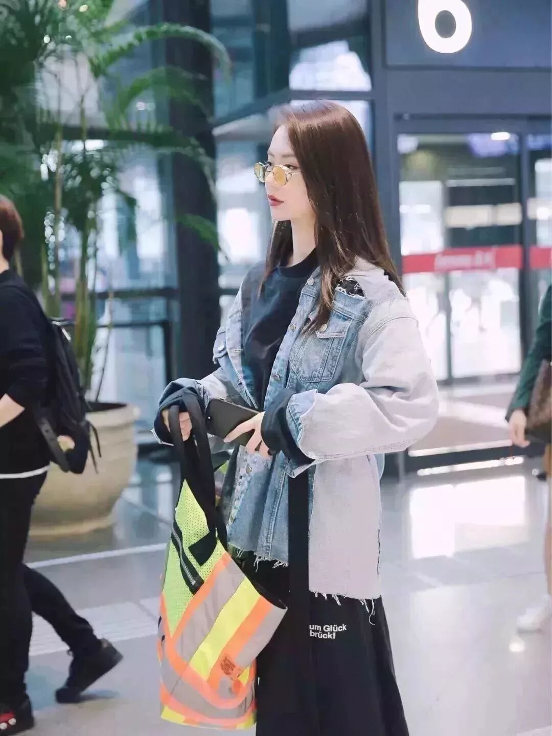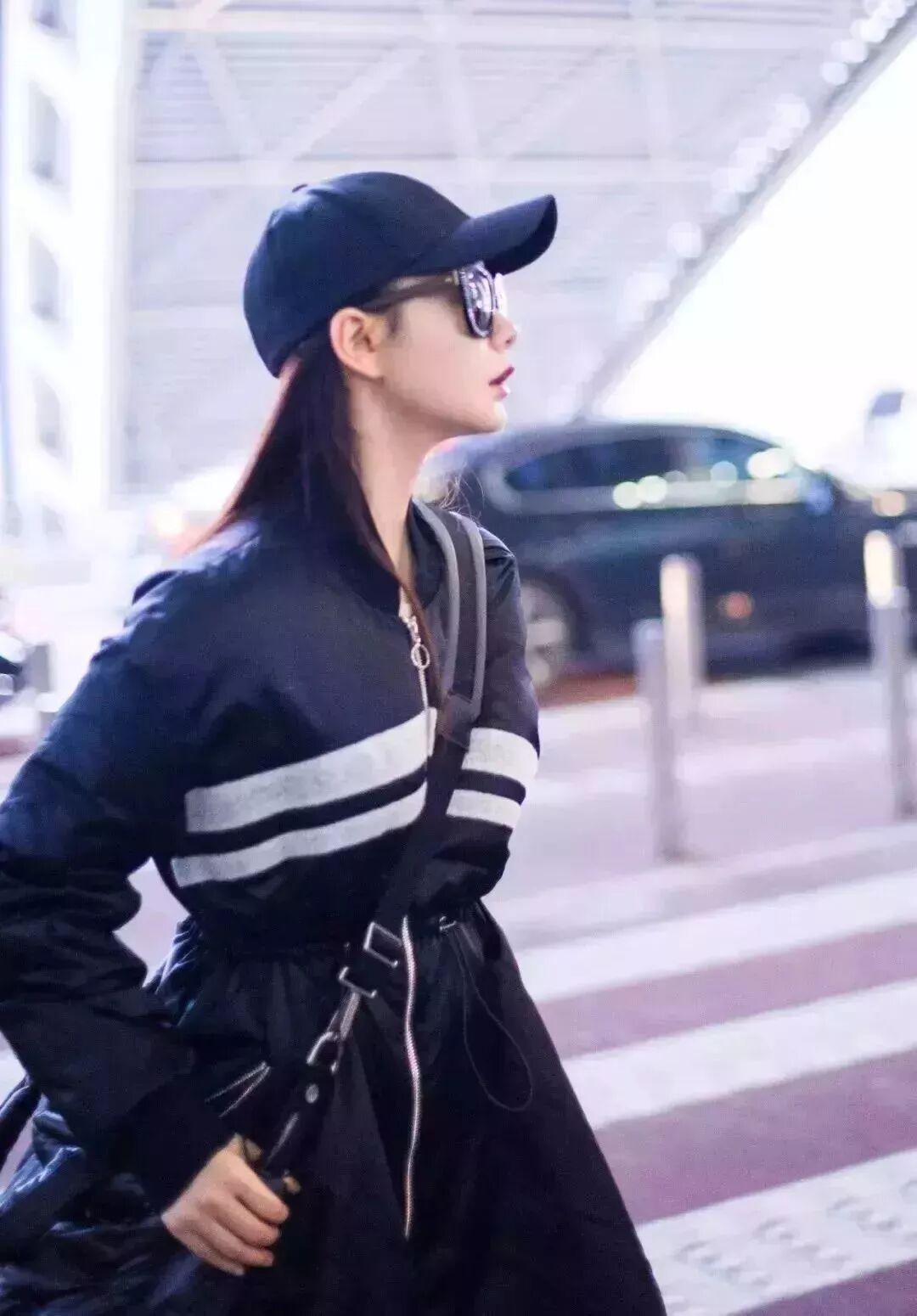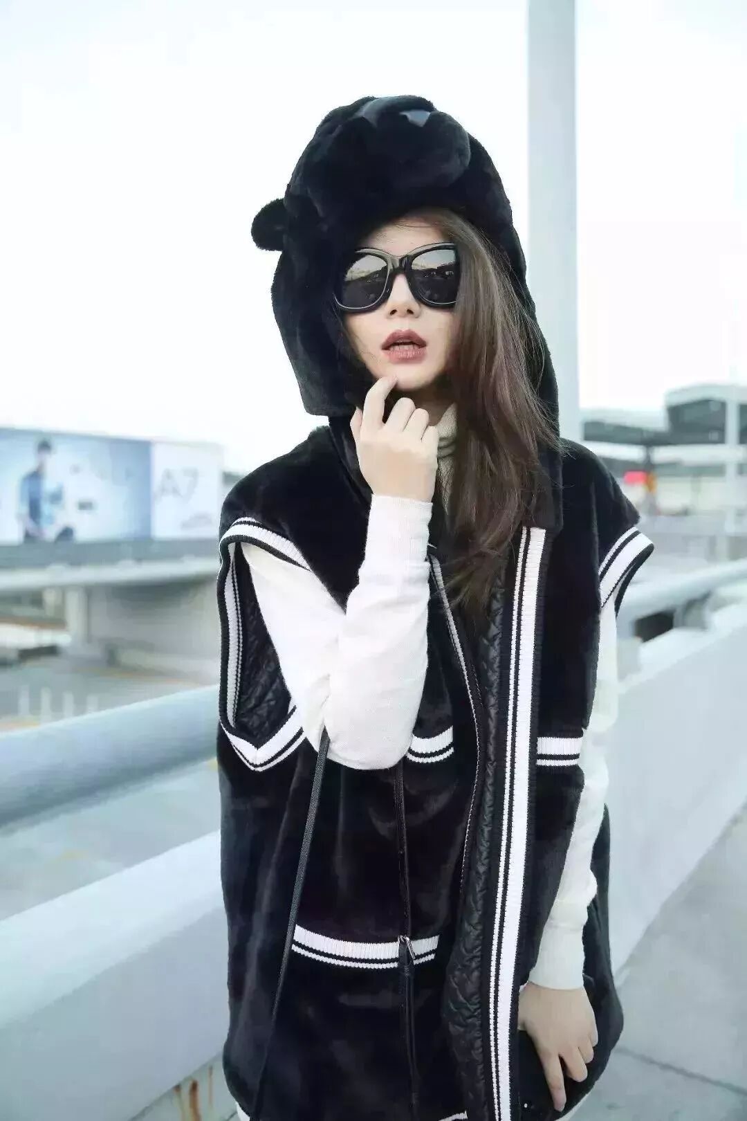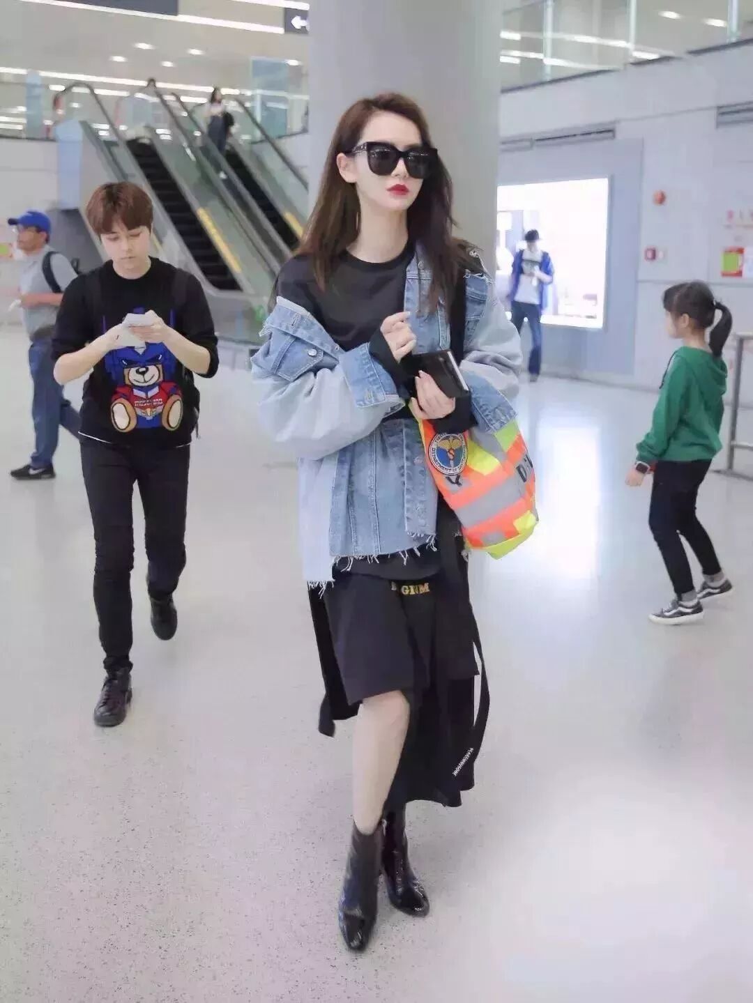 牛仔拼接羊羔毛外套,搭配黑色热裤。常人难以驾驭的堆堆靴被戚薇演绎得恰到好处。一副黑超让小姐姐明星气质显露无疑。