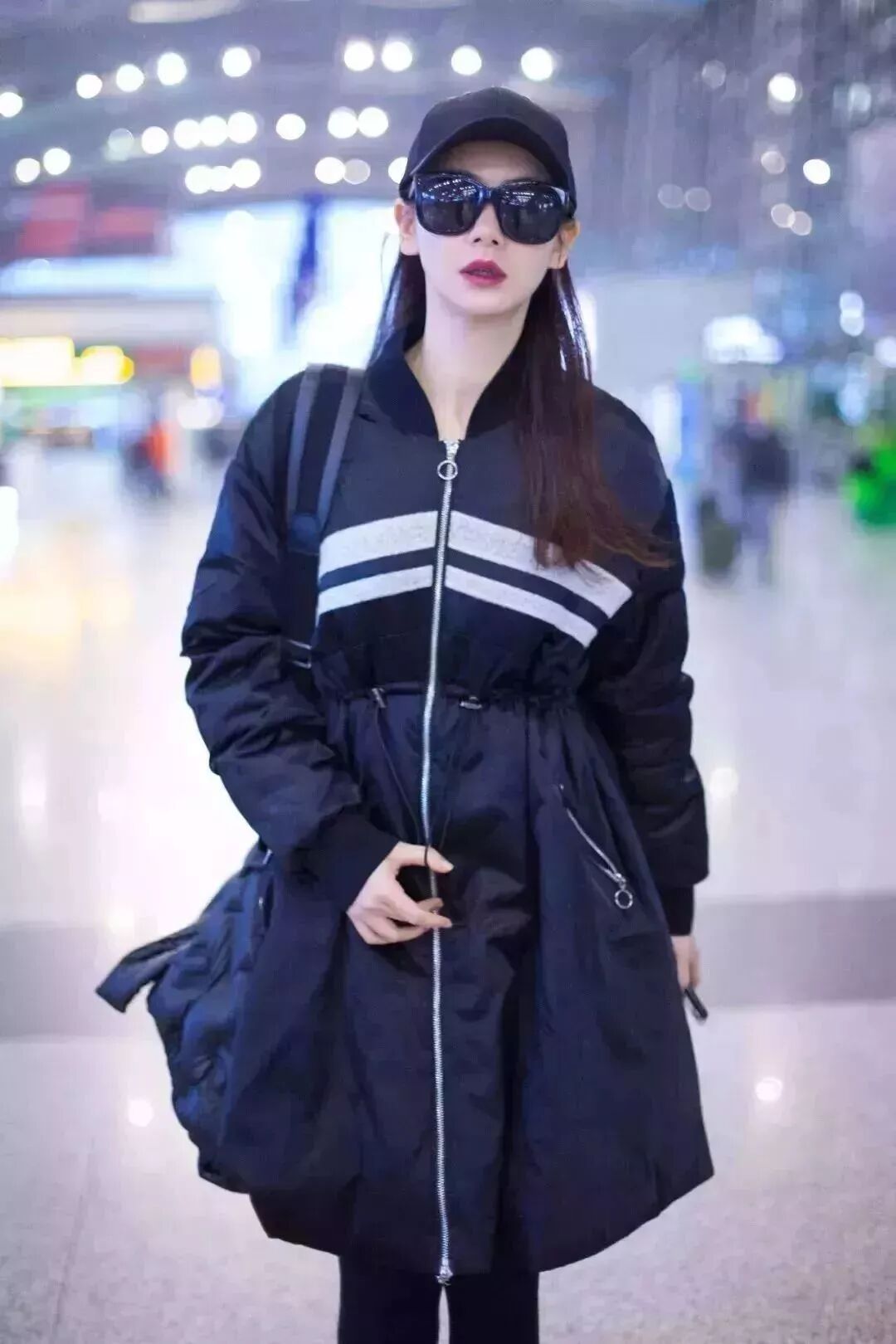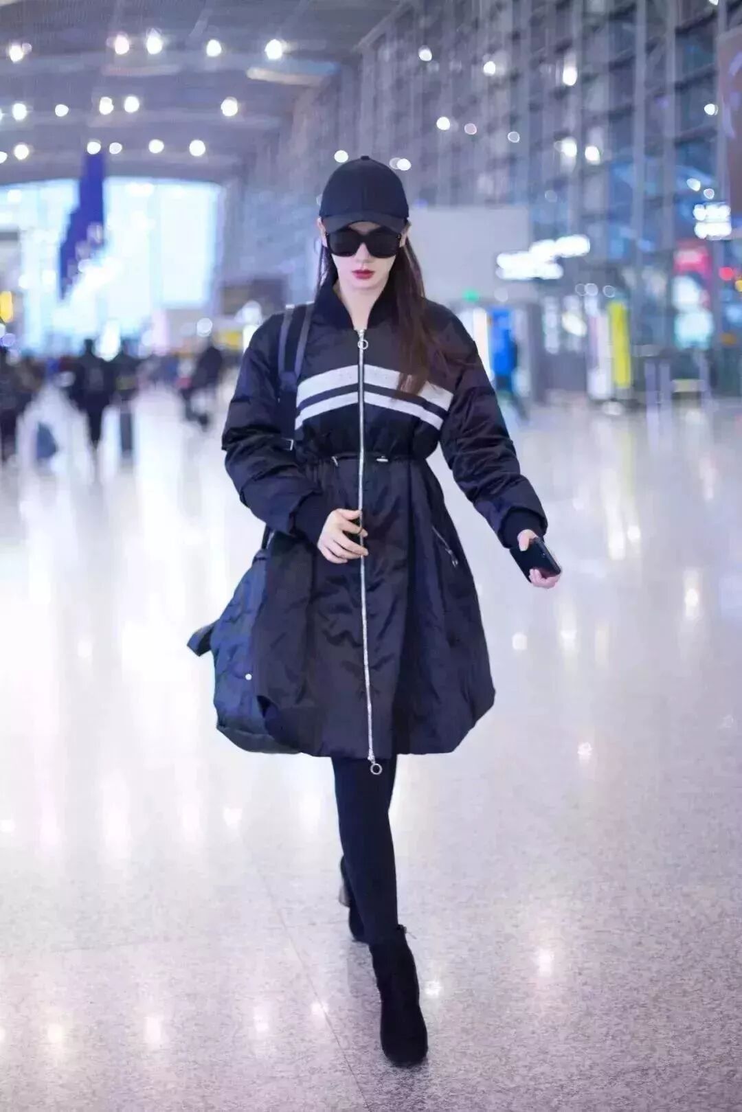 黑色掐腰羽绒服减轻了不少羽绒服带来的臃肿感,小黑裤和小黑靴无缝嫁接让腿悄悄长长10cm,保暖又不臃肿。