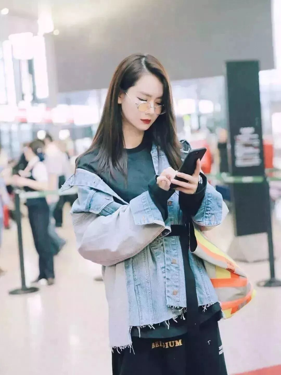 牛仔拼接外套搭配卫衣裙和尖头靴,这样看起来没有亮点的搭配,被戚薇在腰间加了一条腰带,瞬间时尚感up了不少。