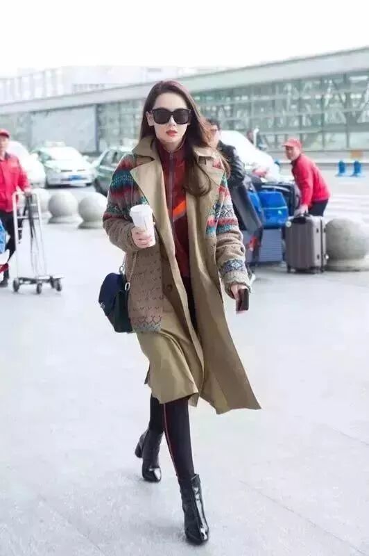 经典风衣外搭一件印花毛衣,再内搭一件高领卫衣,戚薇的混搭灵感怕是永远都用不完?